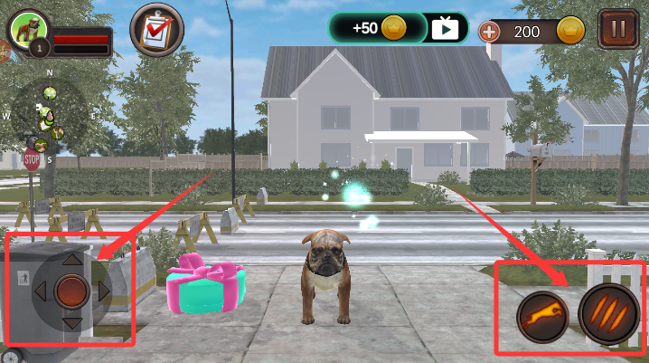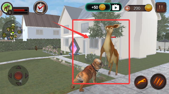 3、左手控制移动狗狗的方向,右手触发攻击动作与场景互动探索。