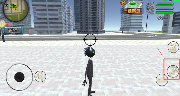 4、右边的图案是绳索按钮,瞄准对面楼可以滑过去。