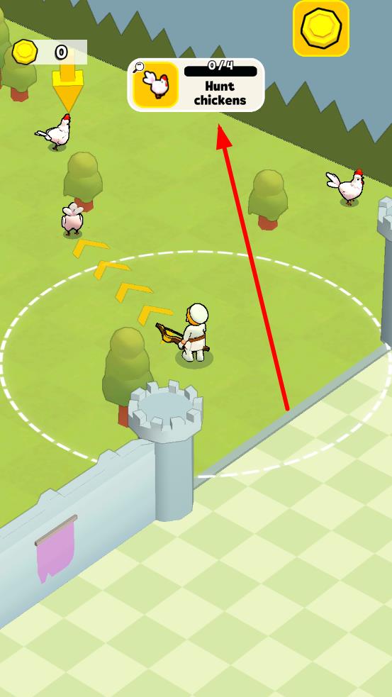 1、依据“Hunt chickens”任务提示,操控角色在草地区域活动,寻找并靠近小鸡,完成指定数量(如4只)的狩猎,获取烹饪食材。