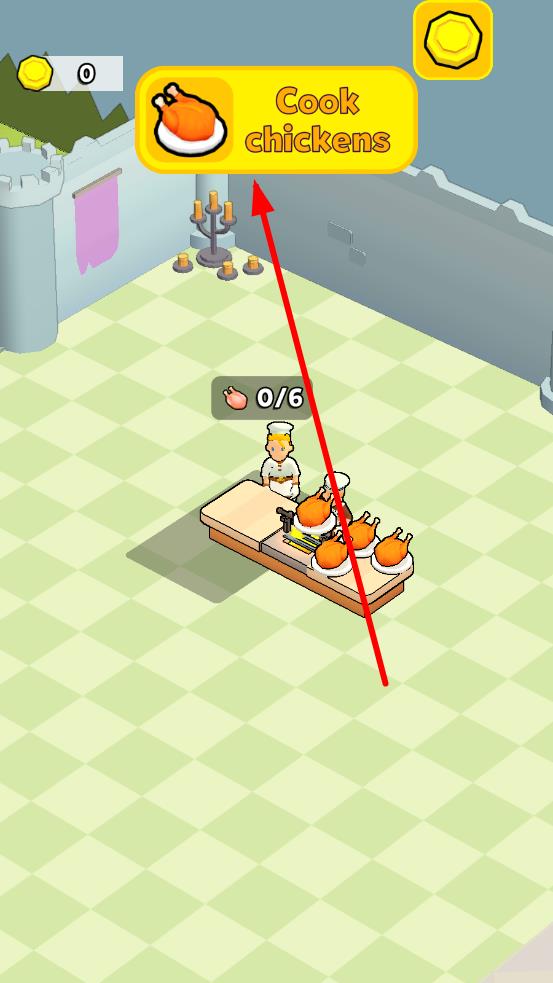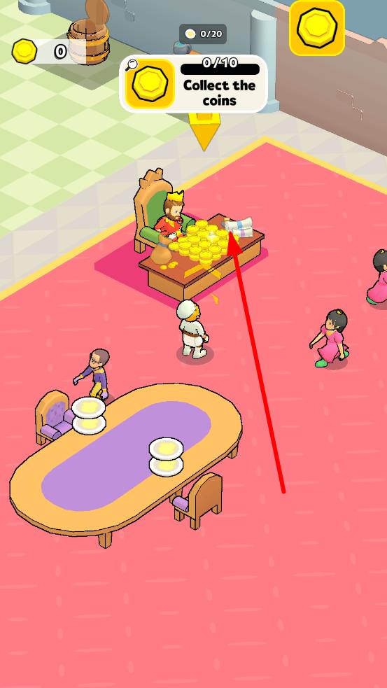 3、前往国王宫殿场景,根据“Collect the coins”任务指引,把制作好的美食送至国王处,成功交付后收集金币奖励,升级厨房设施、解锁新食材。