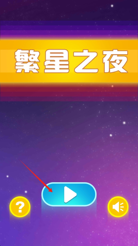 1、游戏启动界面,标题 “繁星之夜”,有开始、帮助(?)、音效按钮,点击开始游戏。