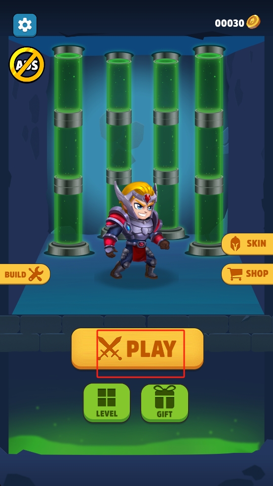 1、在初始界面,点击“PLAY”按钮进入游戏,可先查看“BUILD”“SHOP”了解建筑、商店功能,用金币可解锁皮肤等,为救援关卡做准备。