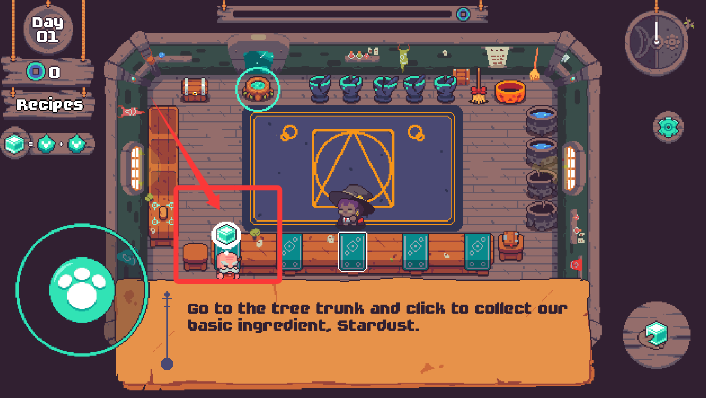 4、需前往指定树干位置点击拾取星尘材料,解锁后续游戏内容。