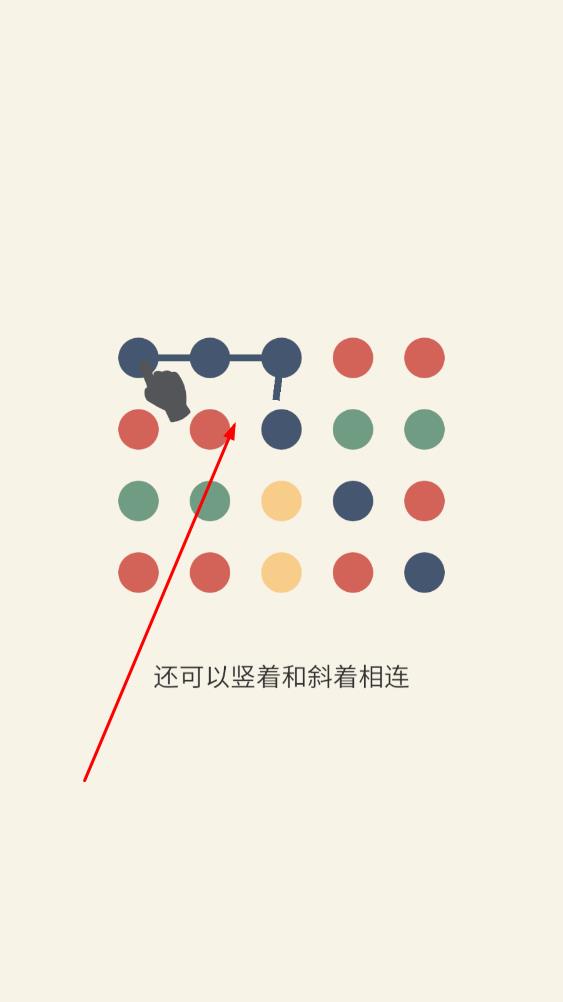 1、观察界面中不同颜色球球的分布,尝试用线条将同色球球串联,完成首次消除。