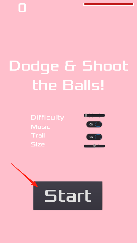 1、在球球躲避粉碎游戏初始界面,点击Start开启挑战,进入Dodge&Shoot the Balls玩法,后续要一边躲球,一边找机会射击,开启这场刺激的躲避射击之旅,看看能坚持多久。