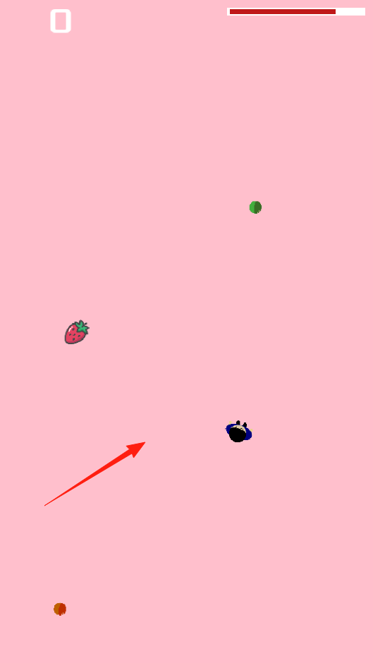 3、游戏正式开始,操控角色灵活移动,避开绿色球这些障碍,同时尽量接住草莓,有加分或特殊效果,每一次成功躲避收集都离高分更近一步,感受快节奏的生存射击乐趣。