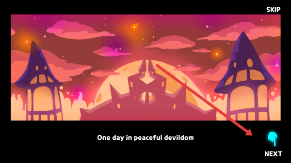1、开场画面呈现平静恶魔领域,点击NEXT推进剧情,开启在奇幻场景的冒险序章,跟随故事了解游戏背景。