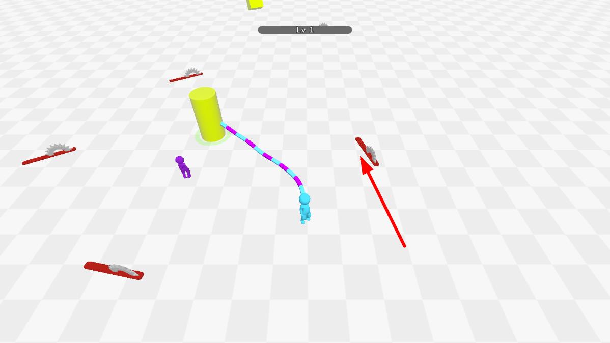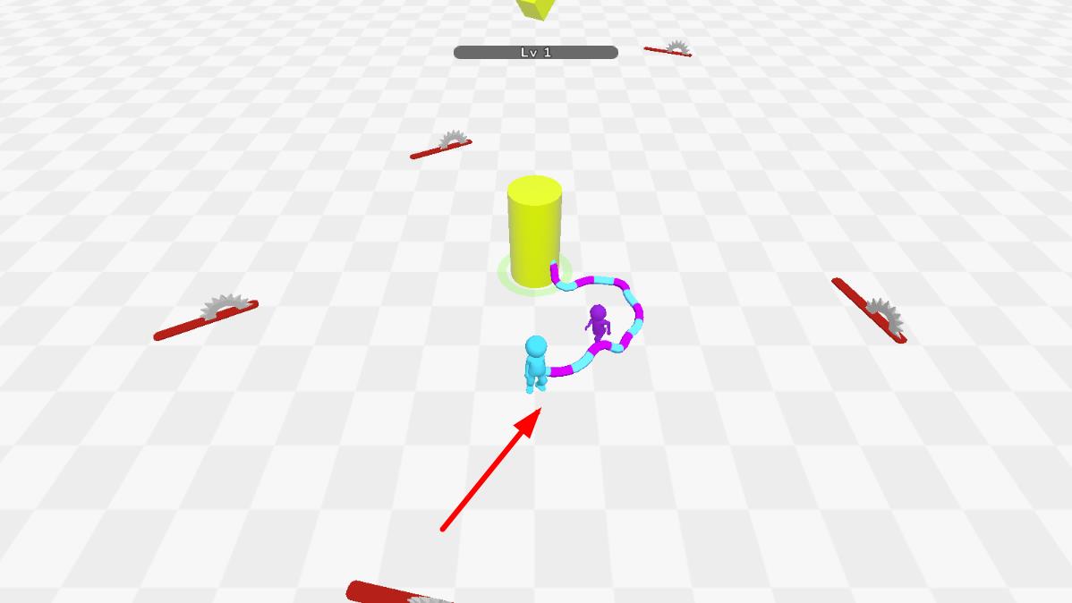 1、进入游戏后选择关卡,通过摇杆控制角色移动,观察提示圈出需要捆绑的目标,尝试用基础方式将其绑在柱子上,熟悉操作流程。