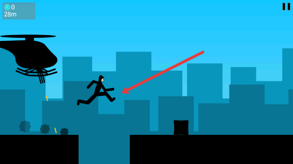 2、在跑酷时,操控火柴人跨越建筑间隙,注意躲避直升机干扰,保持节奏持续向前奔跑,挑战更远距离。