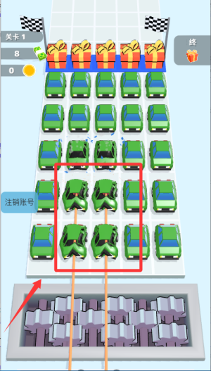2、合理布置陷阱提升钩索效率,将多辆汽车引导至粉碎机路径上,一次性完成回收提高关卡评分。