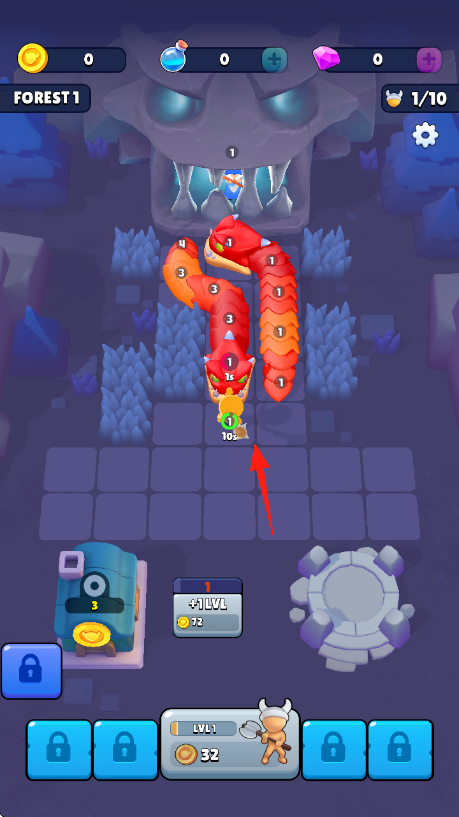 3、渐进式难度提升:随着地牢区域的解锁,巨蛇的强度和出现频率会逐渐增加,矿工的合成等级和类型也需同步提升,难度循序渐进,保持玩家的挑战动力。