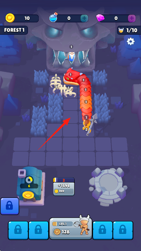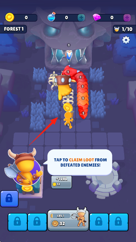 3、继续点击箭头方向,让角色深入关卡,挑战更多怪物,升级成长,解锁新内容。