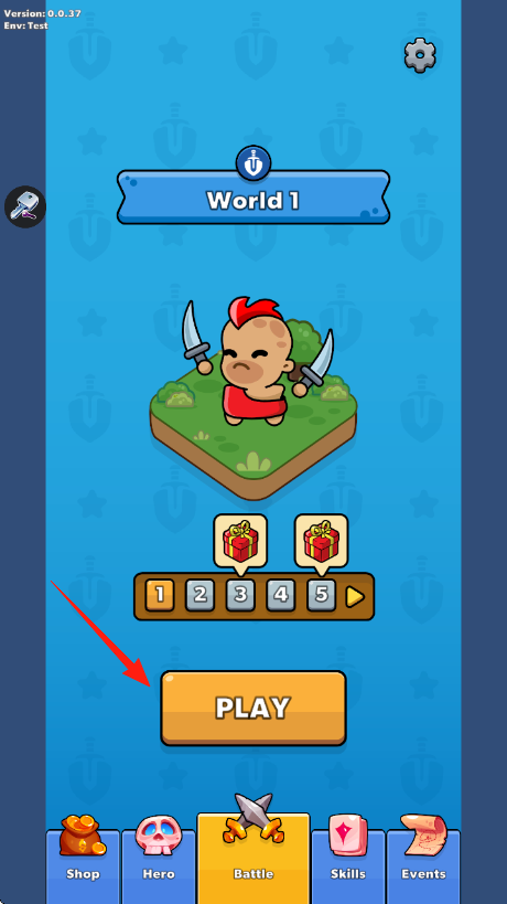 1、点击PLAY箭头指向,进入World1第一关,消耗资源无显示消耗开启战斗。