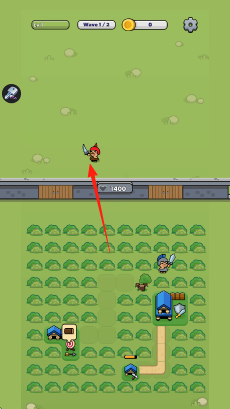 3、操控生产的战士箭头指向角色,移动到指定区域,拦截敌方单位,守护基地,完成波次防御。