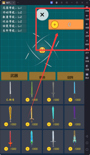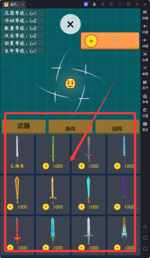3、玩家可使用金币购买和升级各类武器、剑阵装备,不仅提升战斗力还能获得独特的视觉效果,不同武器组合和战斗策略。
