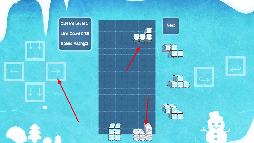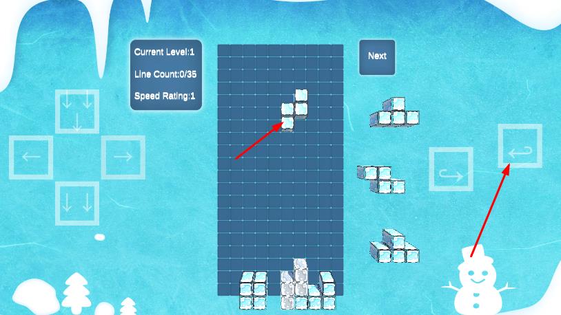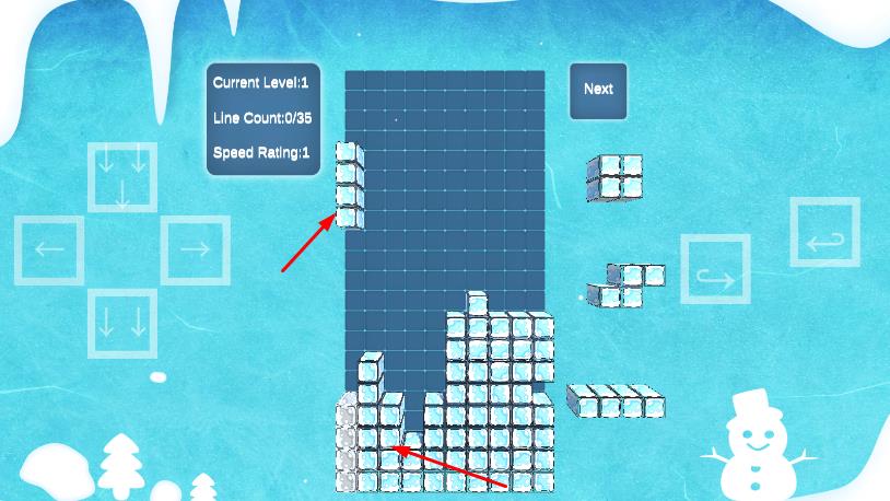 2、通过旋转、平移方块,将其堆叠在网格上,填满行或列消除,积累Line Count。