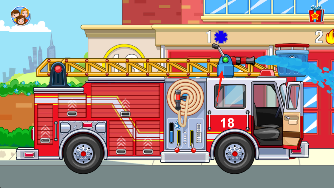 2、简单易操作:操作按钮直观,如点击驾驶按钮移动消防车、长按水枪按钮喷水,无需复杂操作,孩子能独立完成任务,培养自主能力。