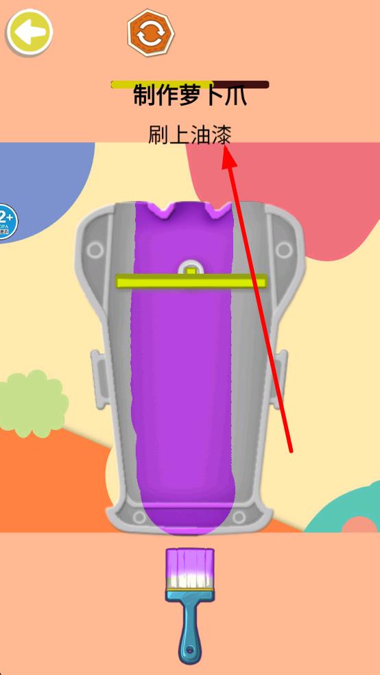2、按步骤拆卸、组合零件,如“刷上油漆”等操作,打造金刚萝卜爪;利用金币解锁新零件,丰富武器造型,提升战力。