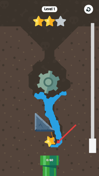 3、容错设计轻松闯关:具备一定容错率,即使水流洒出一点也没关系,只要剩余水量足够流入洞口即可通关,玩家可在多次尝试中优化路径。