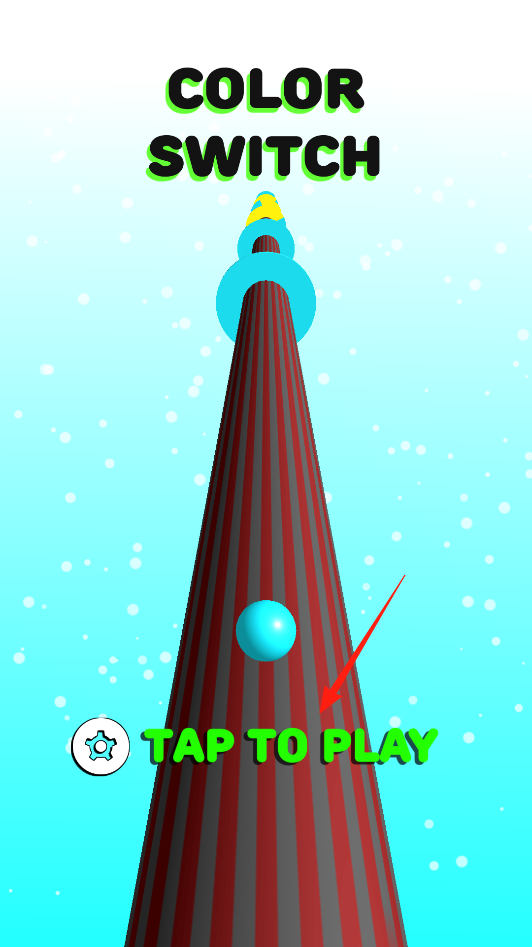 1、进入COLOR SWITCH,点击TAP TO PLAY,小球就开始往上冲,要穿过彩色圆环,还得注意颜色匹配,,每穿一个环都超刺激,赶紧让小球开启冒险。