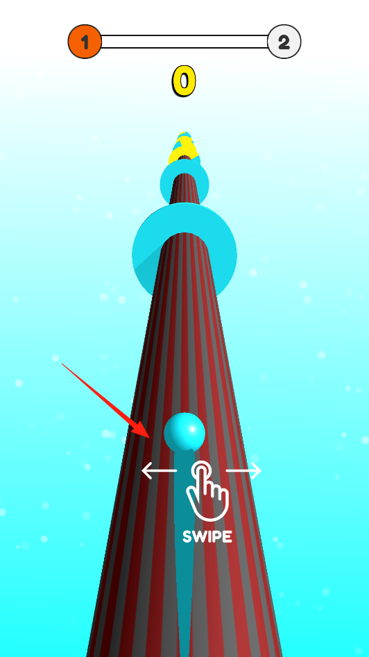 1、操控旋转精准跳跃:让小球恰好跳跃在无隔板的地方进入下一层,灵活调整柱子旋转角度,确保小球每一次跳跃都精准无误,操作的精准度直接影响闯关成败。
