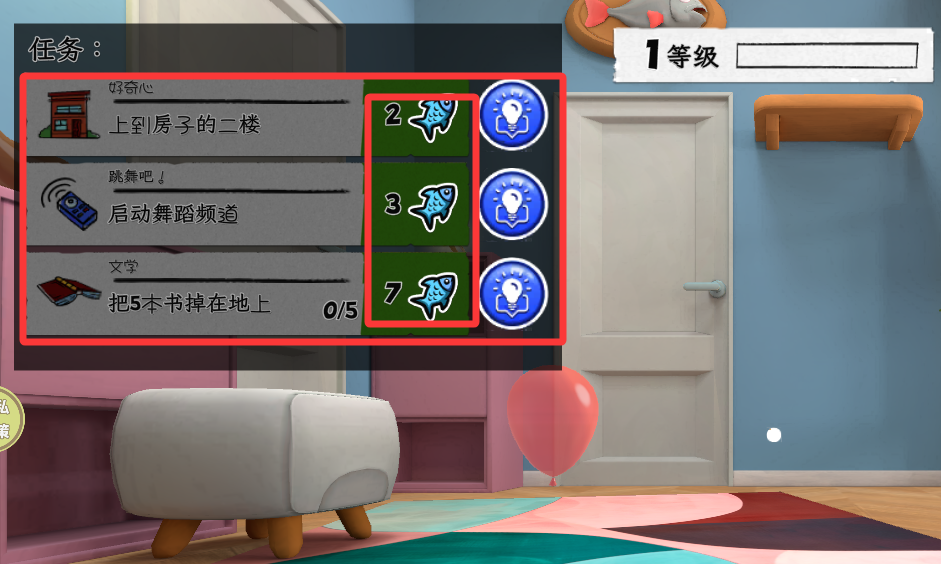 2、创新的"道具合成"系统,可以组合找到的物品创造新工具,如将毛线球和铃铛制成诱饵装置。游戏内提供30多种可交互物品。