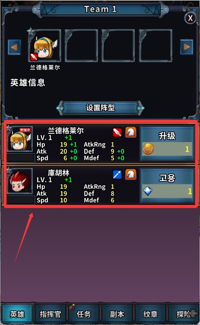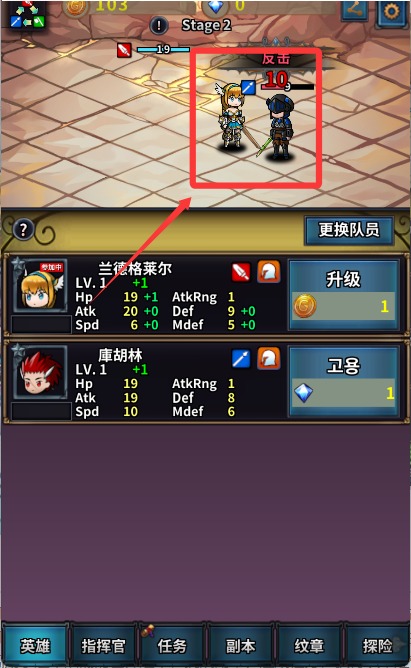 1、角色建设阶段,先从招募四位基础英雄入手,组建初始团队后出征地牢,自动战斗过程中可查看进度与战斗日志。