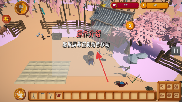 2、进入游戏场景后,根据操作介绍提示,通过触摸屏幕控制角色移动,熟悉游戏基本操作方式,适应游戏节奏。
