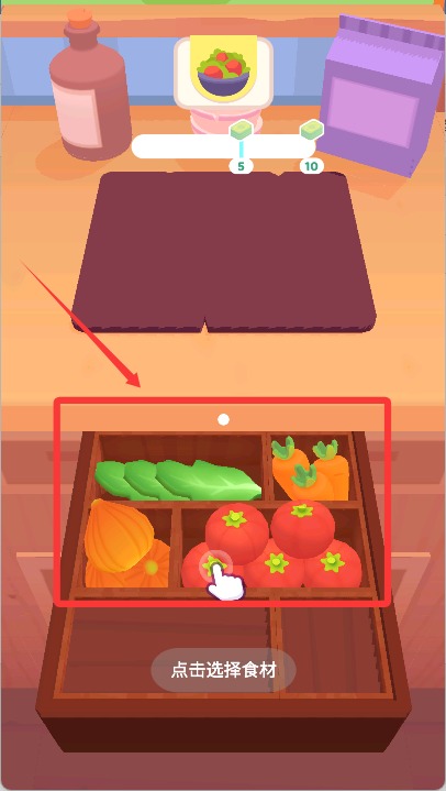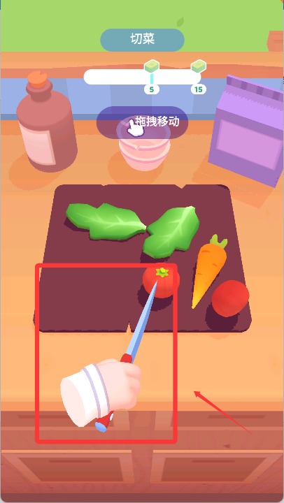 3、然后就可以拖拽移动菜刀,会自动切菜。
