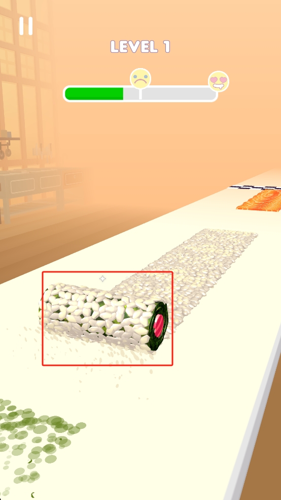 3、趣味反馈设计:寿司滚动时会发出软糯的音效,撞到障碍物会有可爱的震动反馈,收集满食材时会触发欢庆动画,让整个过程充满愉悦感。