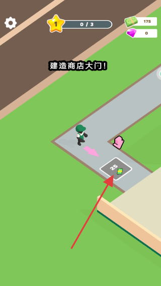 2、当提示建造商店大门时,使用已收集资金点击对应建造区域,完成商店大门建造,推进店铺建设。