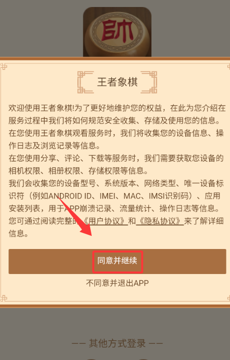 1、点击红色框框的同意并继续。