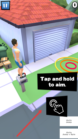 1、在游戏初始界面,长按屏幕瞄准,利用Tap-and-hold-to-aim操作,让角色精准跳跃向目标。