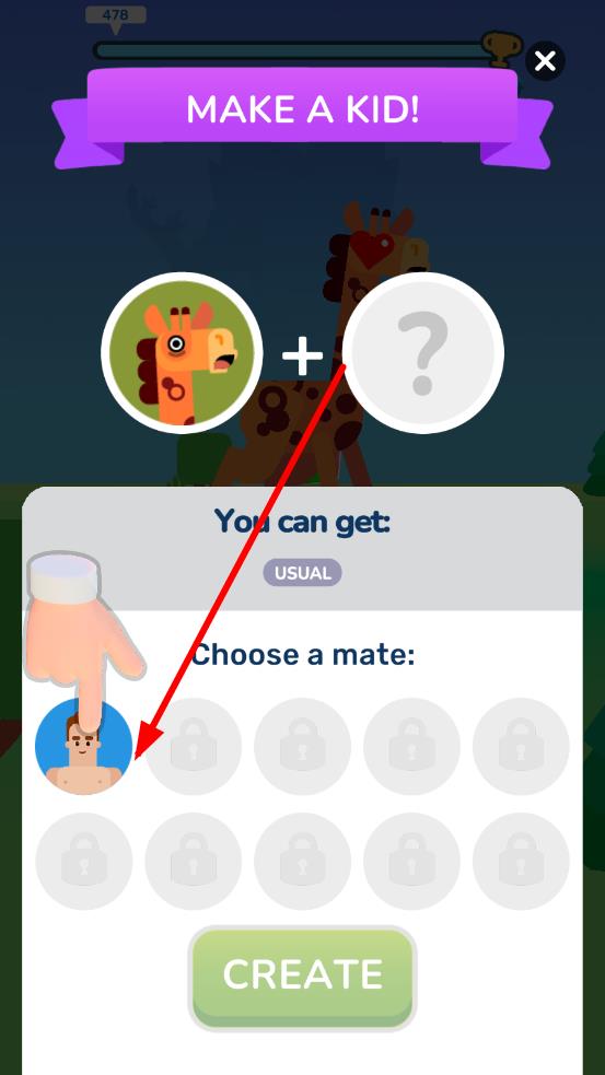 2、为长颈鹿挑选心仪的对象,为一名男性,两人成功诞下一名宝宝,从而获得丰厚的奖励。
