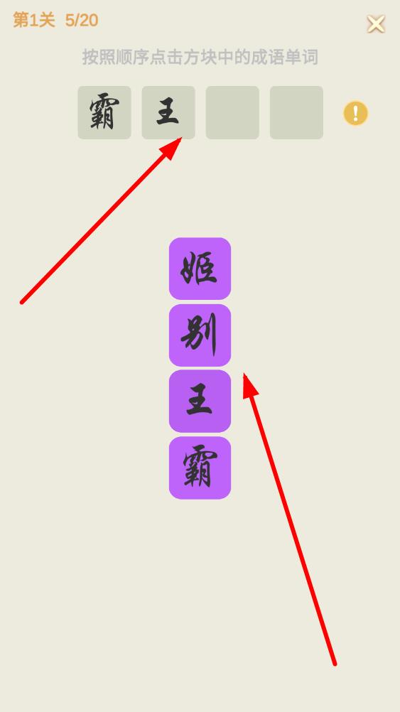 1、字符拖拽排列:用拖拽操作移动单个字符,将其放置在指定区域的对应位置反复调整,直至所有字符组成完整且正确的成语。