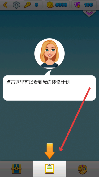 3、按照提示点击下方剪贴板图标,通过查看玛丽完整的装修计划,可以为后续装修操作做准备。