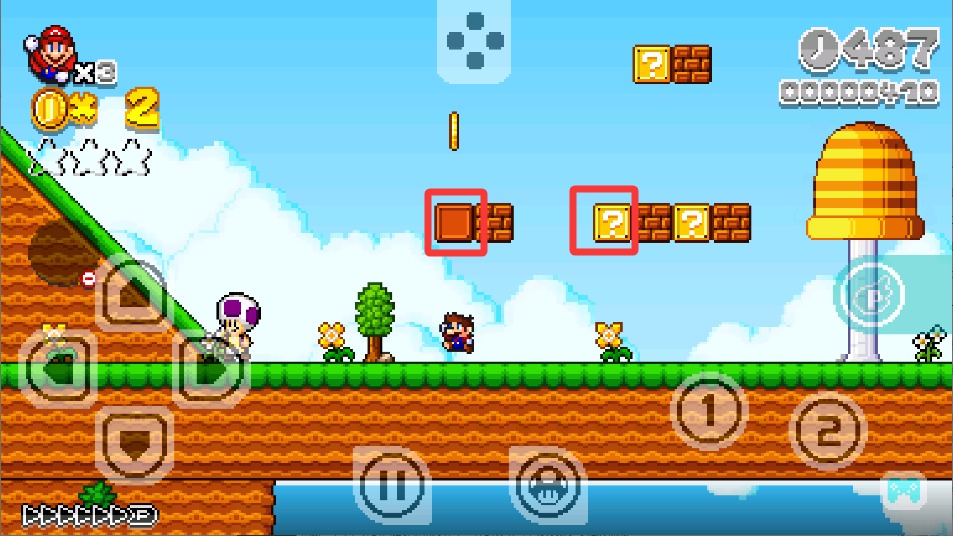 1、进入超级马里奥2D世界后,使用手指左右滑动屏幕控制角色移动,注意避开路上的坑洞和障碍物稳步前进。
