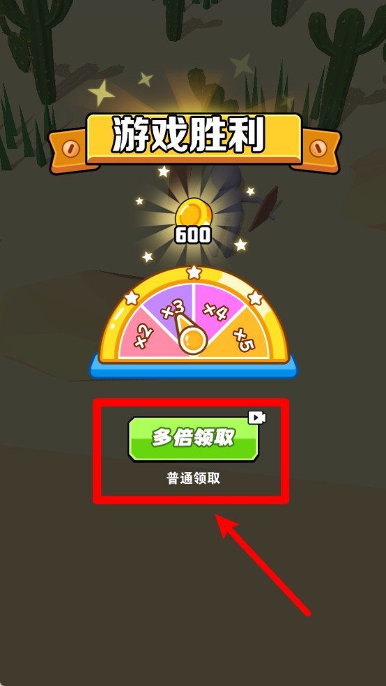 3.战斗结算:完成任务后系统会展示奖励页面,点击“多倍领取”可观看视频领取翻倍金币,快速积累资源。