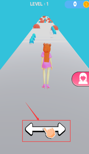 3、触碰红框双向箭头区域,控制角色左右移动方向。