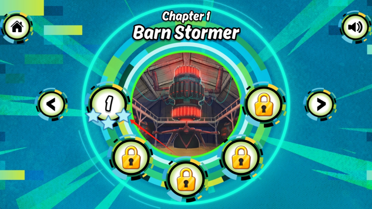 2、进入章节选择界面,跟随箭头提示,选择Chapter-1-Barn-Stormer的第一关,确定游戏关卡,点击选择关卡。