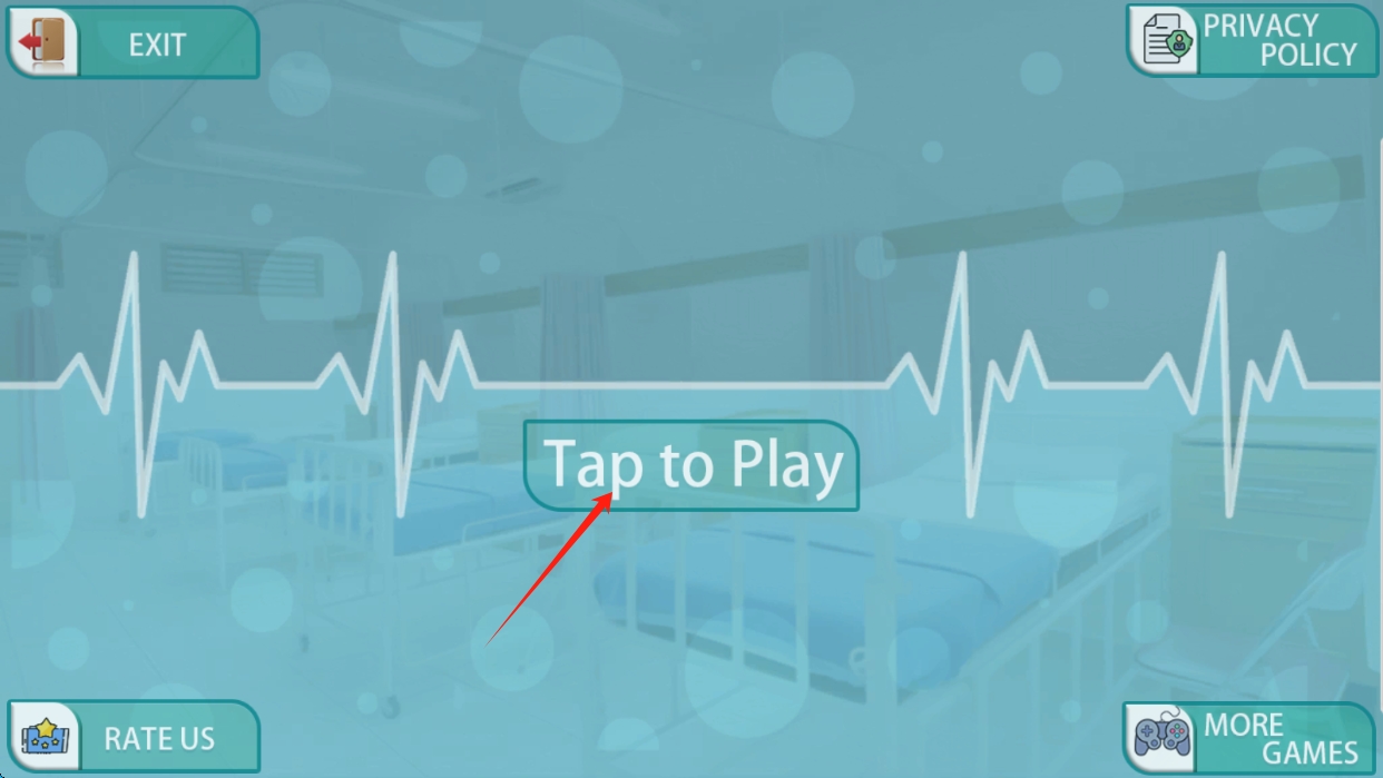 1、在游戏启动界面,点击Tap-to-Play,开启医疗模拟冒险,进入游戏世界,点击按钮开始游戏。