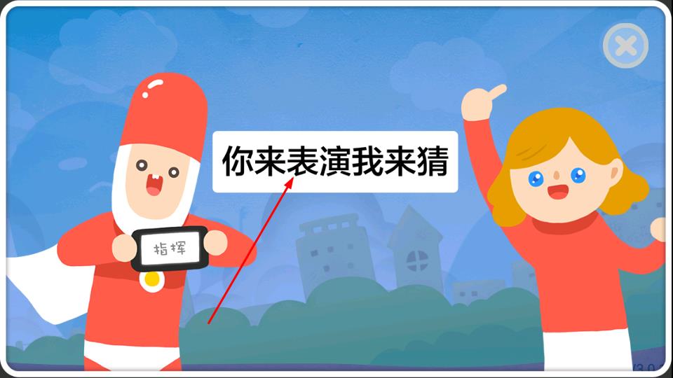 2、游戏遵循你来表演我来猜规则,一方依据词语表演,另一方猜测,协作推进游戏。