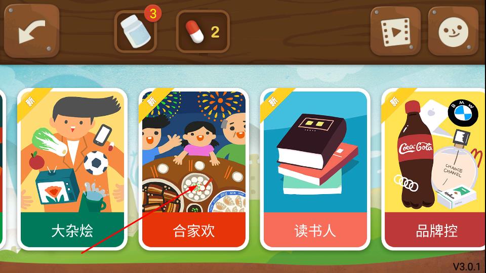 3、在主题界面,选择如合家欢等主题卡,围绕卡中元素开展表演与猜测挑战。