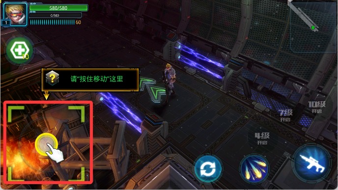 4、开始游戏后滑动左下角摇杆即可移动角色。