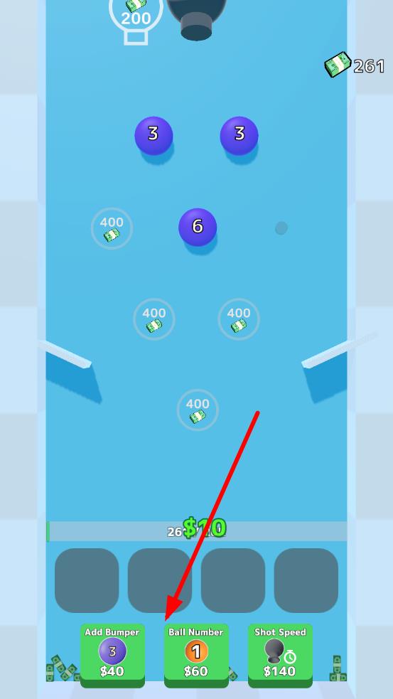 2、利用收集的金币,在底部界面升级数字球数量,放置更多数字求,让弹珠多次碰撞,获得更多金币。