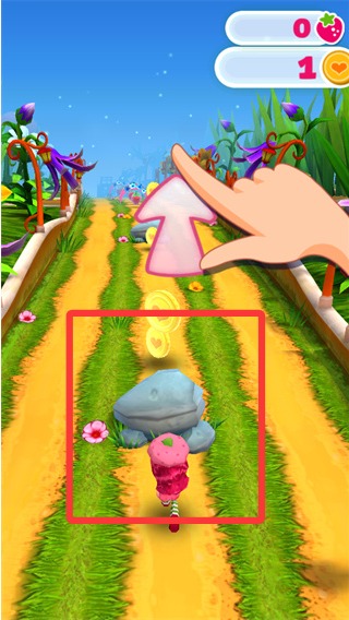 2、当遇到石头时,我们可以上滑跳过障碍。