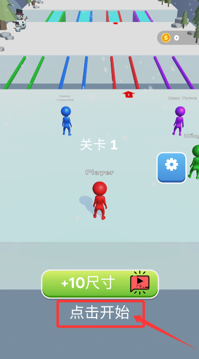 1、选择第一关卡,轻触"点击开始"选项,即可正式进入雪球竞速挑战。