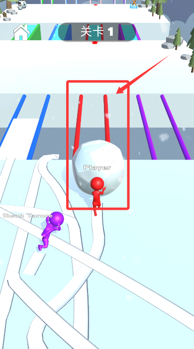 2、指挥红色角色推动雪球前进,注意避开沿途彩色的对手障碍物。