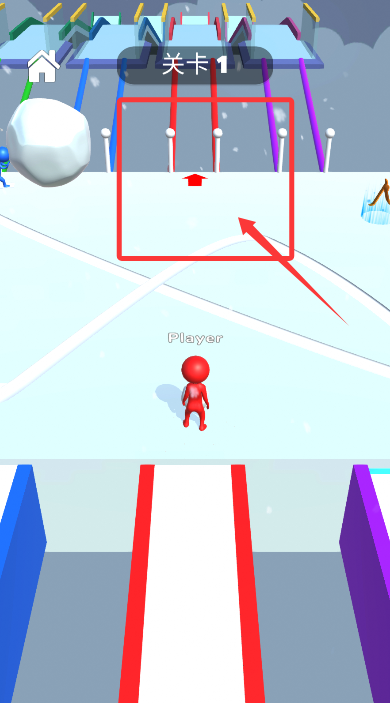 3、控制角色沿正确路线移动,确保雪球通过相匹配的彩色通道区域。