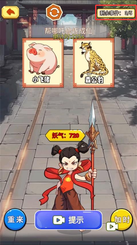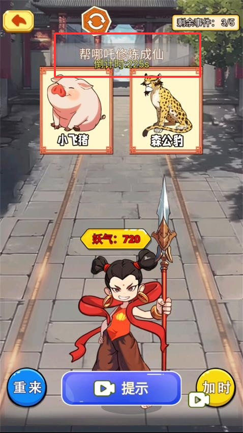 2、进入游戏后,在规定时间内帮哪吒修炼成仙即可完成关卡。